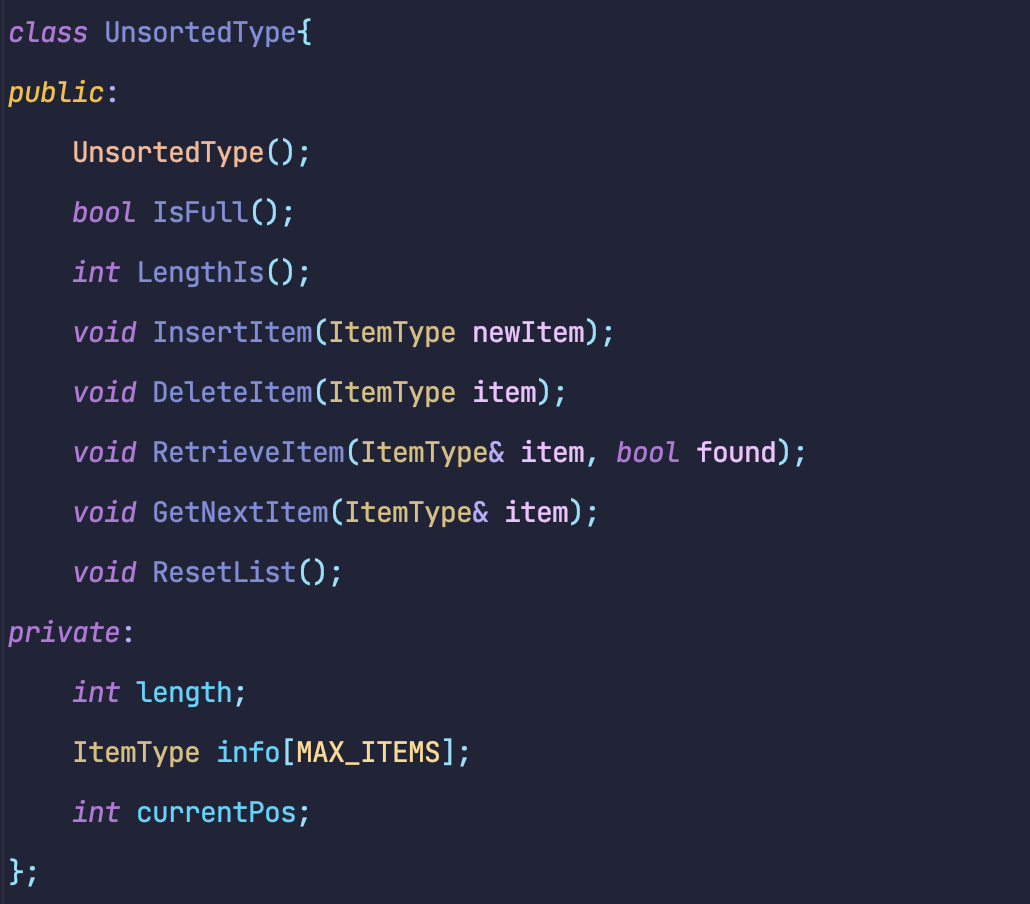void UnsortedType::InsertItem(ItemType newItem){